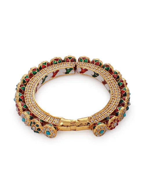 Preeta Gold Plated Jadau Openable Navratan Pacheli Bangle - QUEENS JEWELS