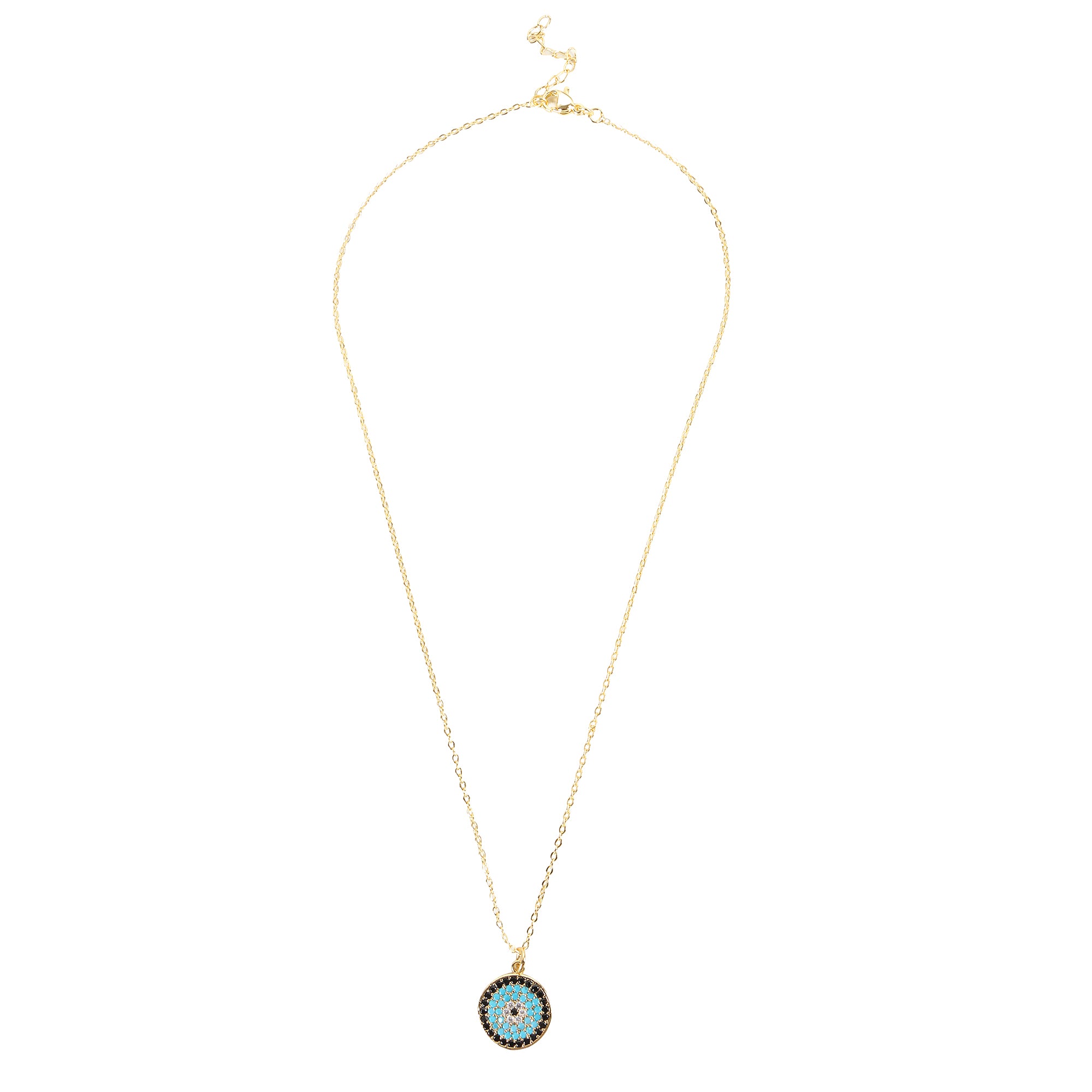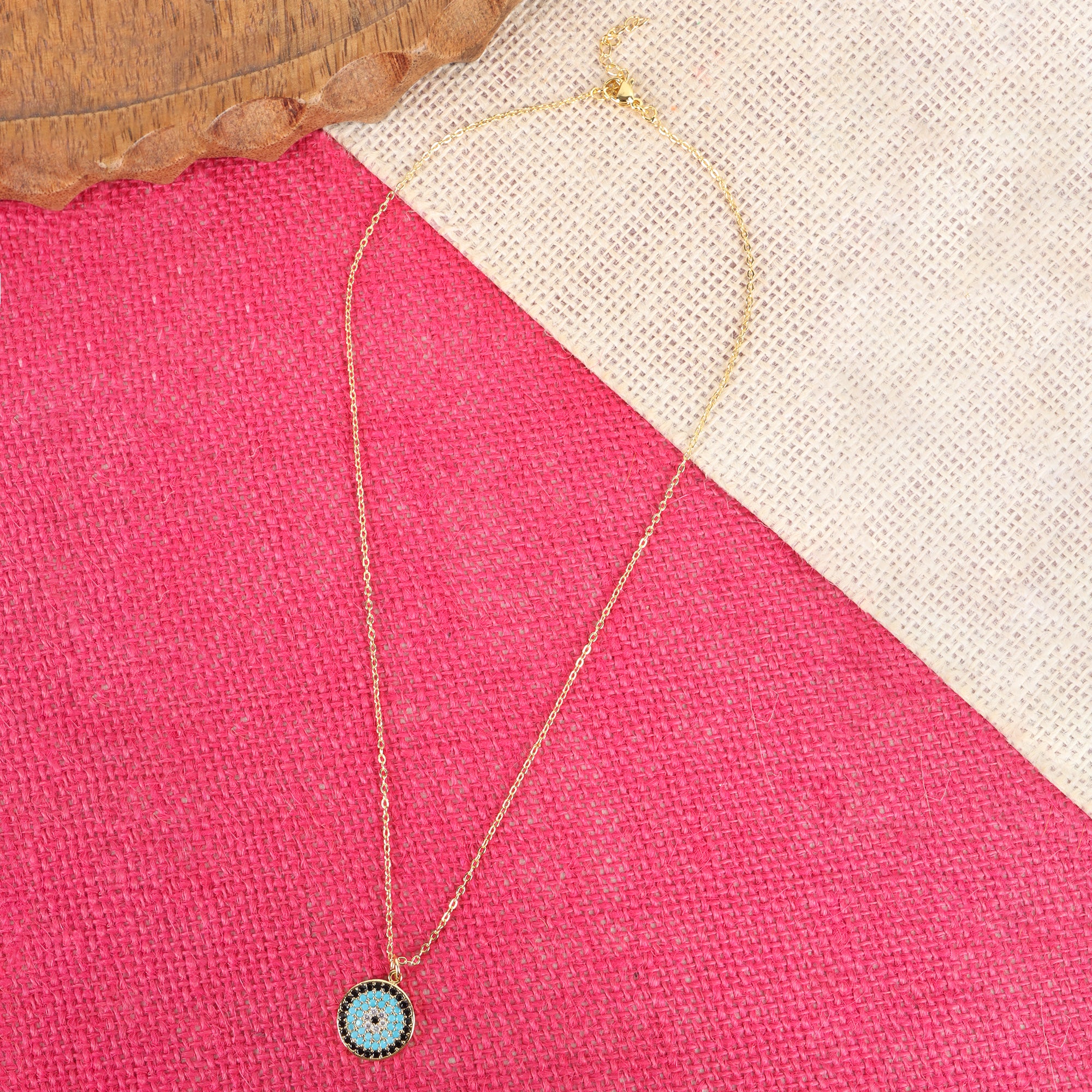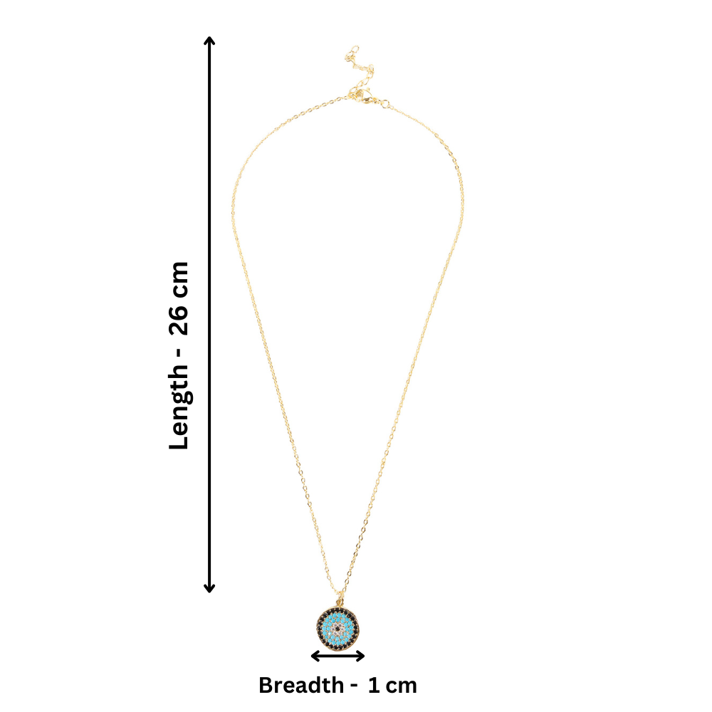 Round Shape Evil Eye Pendant With Chain - Gold Tone