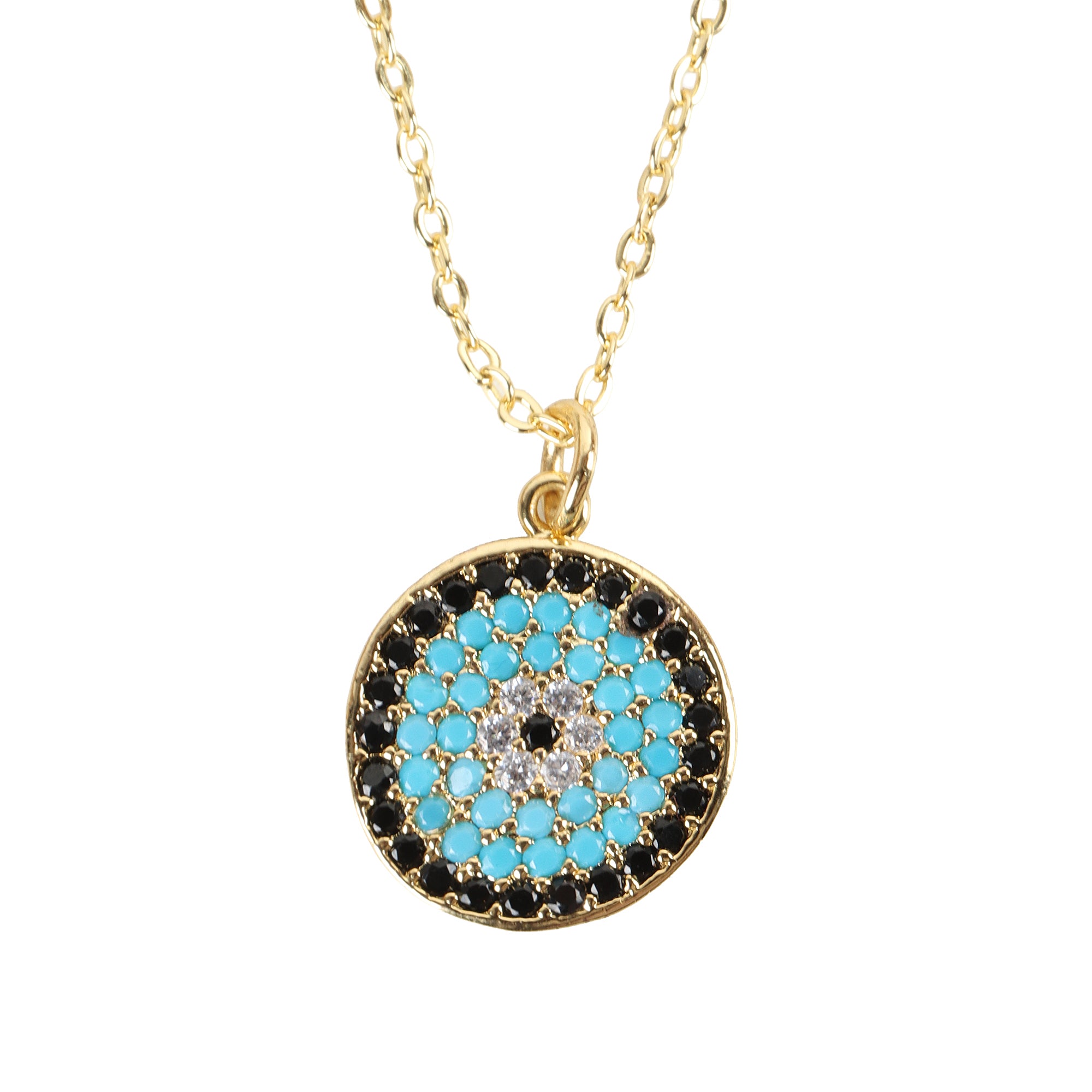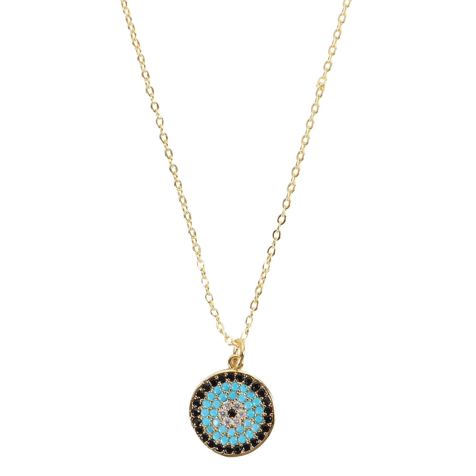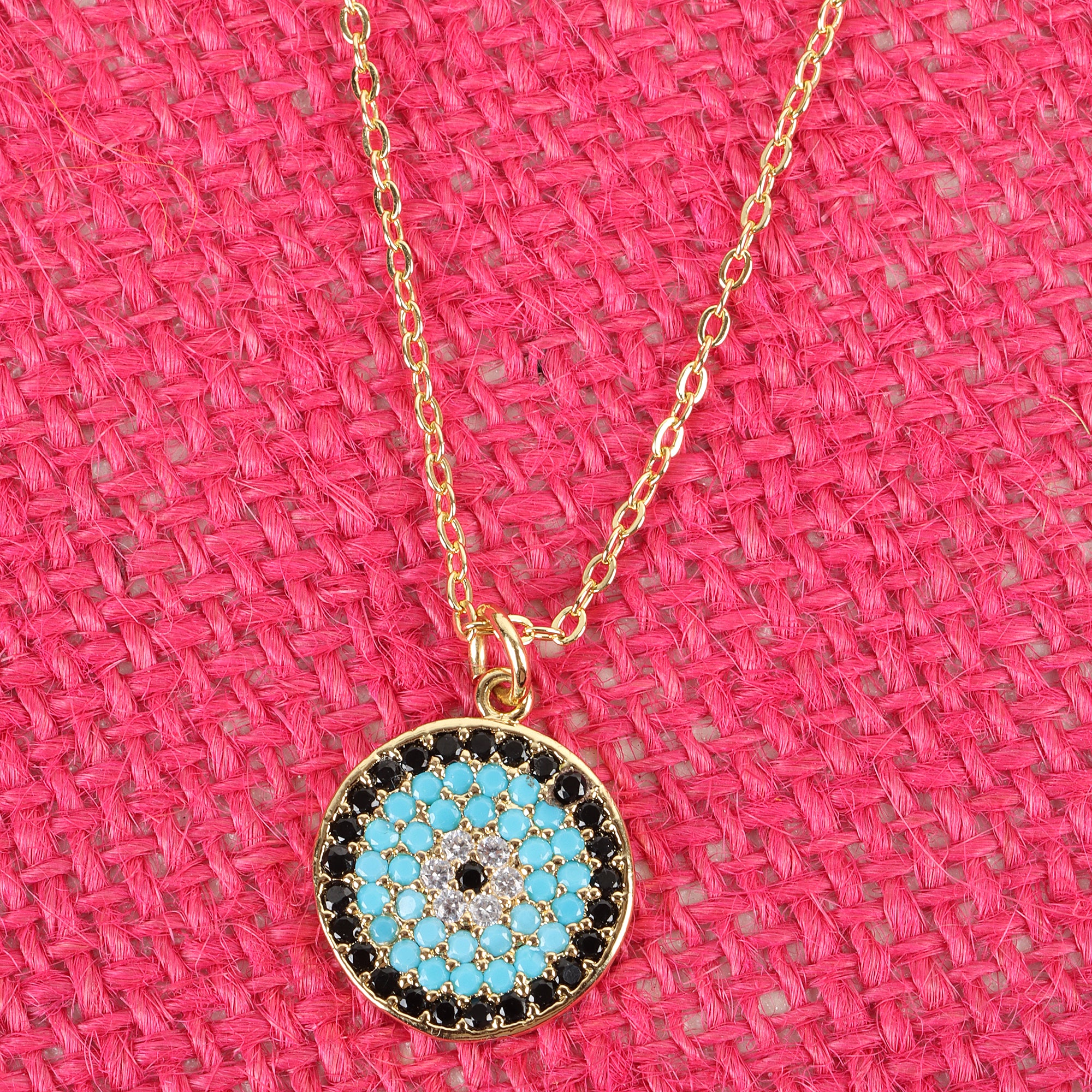 Round Shape Evil Eye Pendant With Chain - Gold Tone