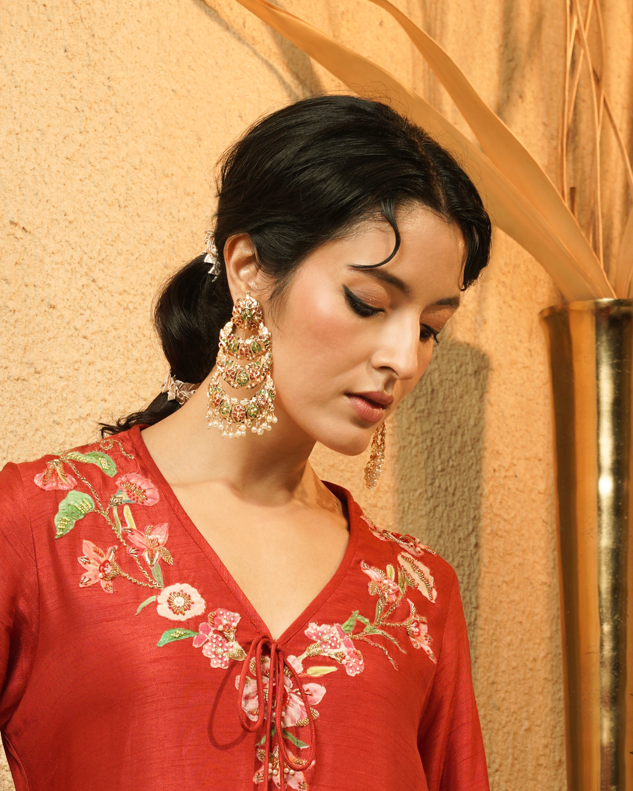 Dilbaro Ruby Red Jadau Choker Set with Earrings