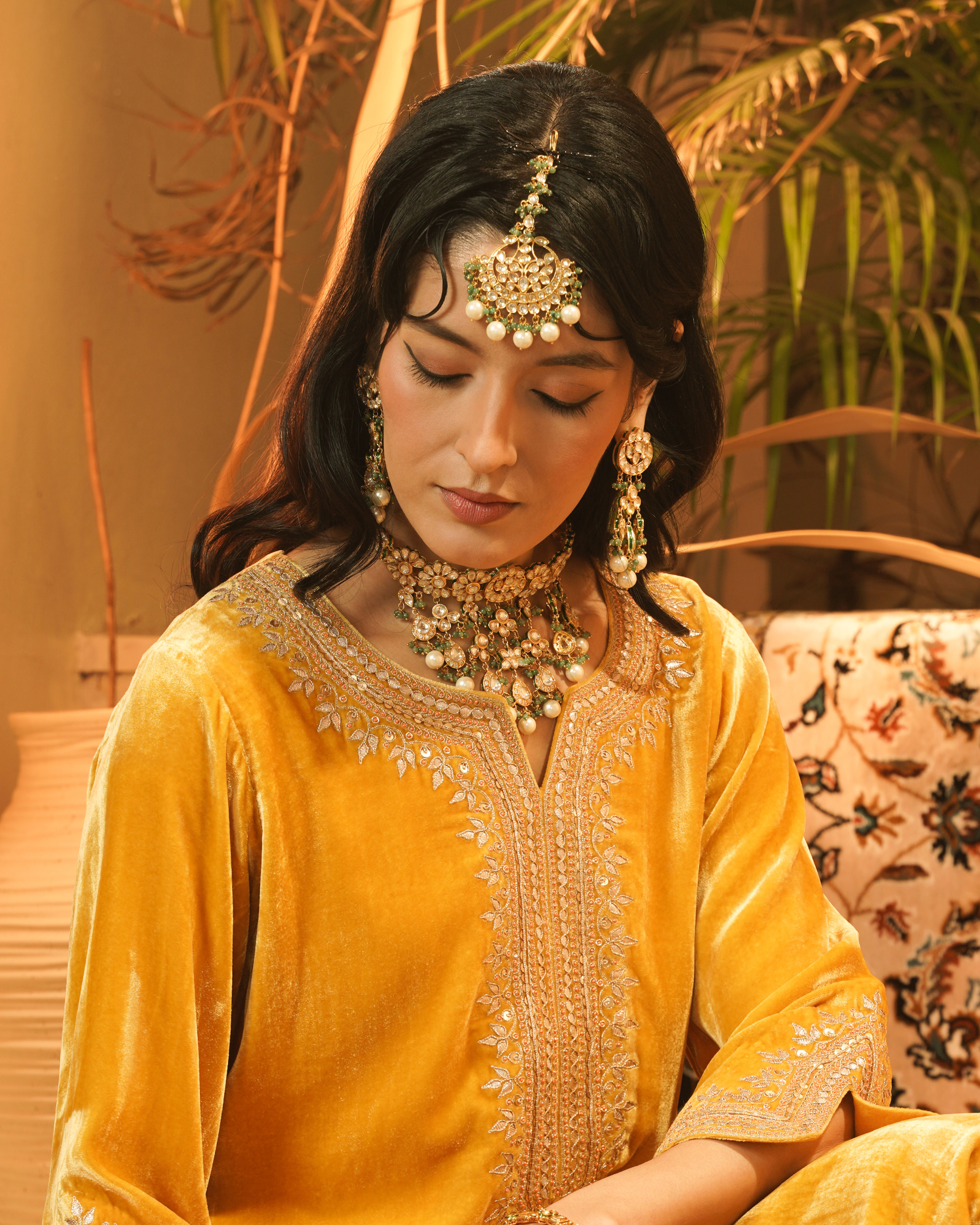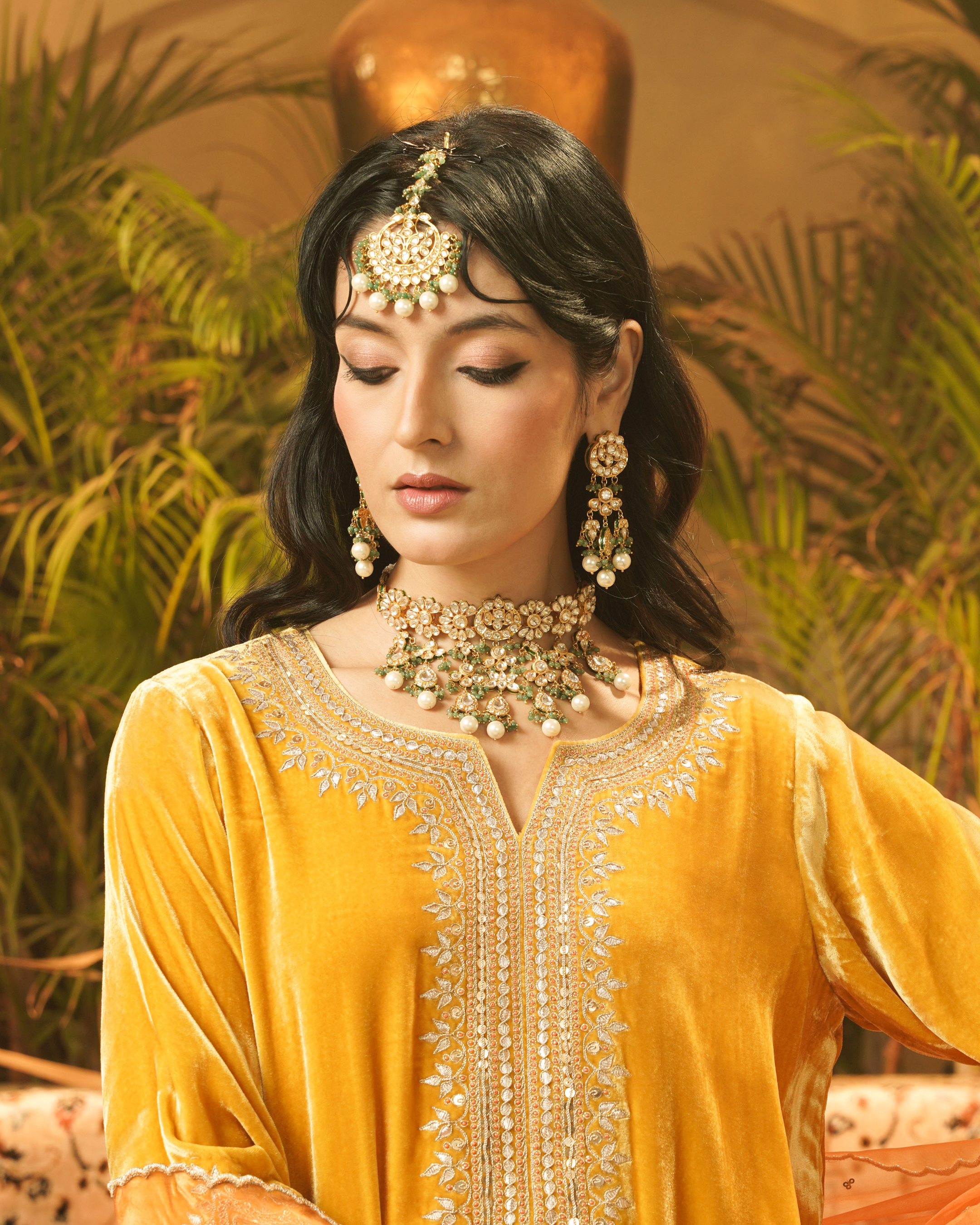 Royal Green Layered Kundan Choker Set with Maangtikka