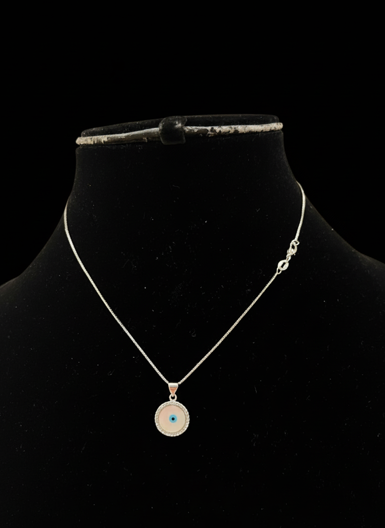 Embrace timeless elegance and protection with our Evil Eye Silver Pendant. Crafted in sleek sterling silver, this minimalist pendant features the iconic evil eye motif — a symbol believed to ward off negativity and attract positive energy. Its subtle shine makes it perfect for everyday wear or layering with other pieces for a chic, modern look.
