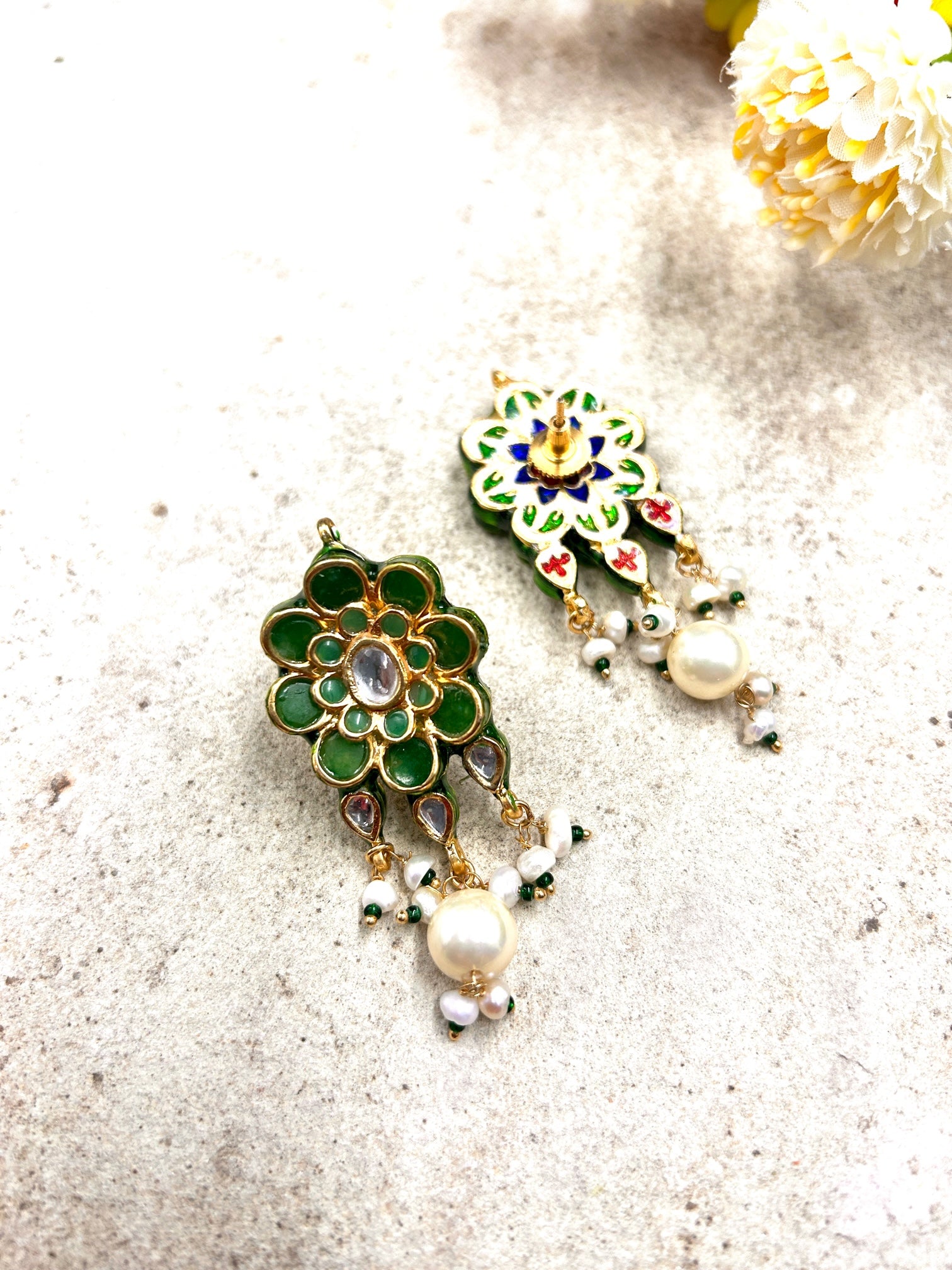 Aisha Emerald Green Kundan Earrings