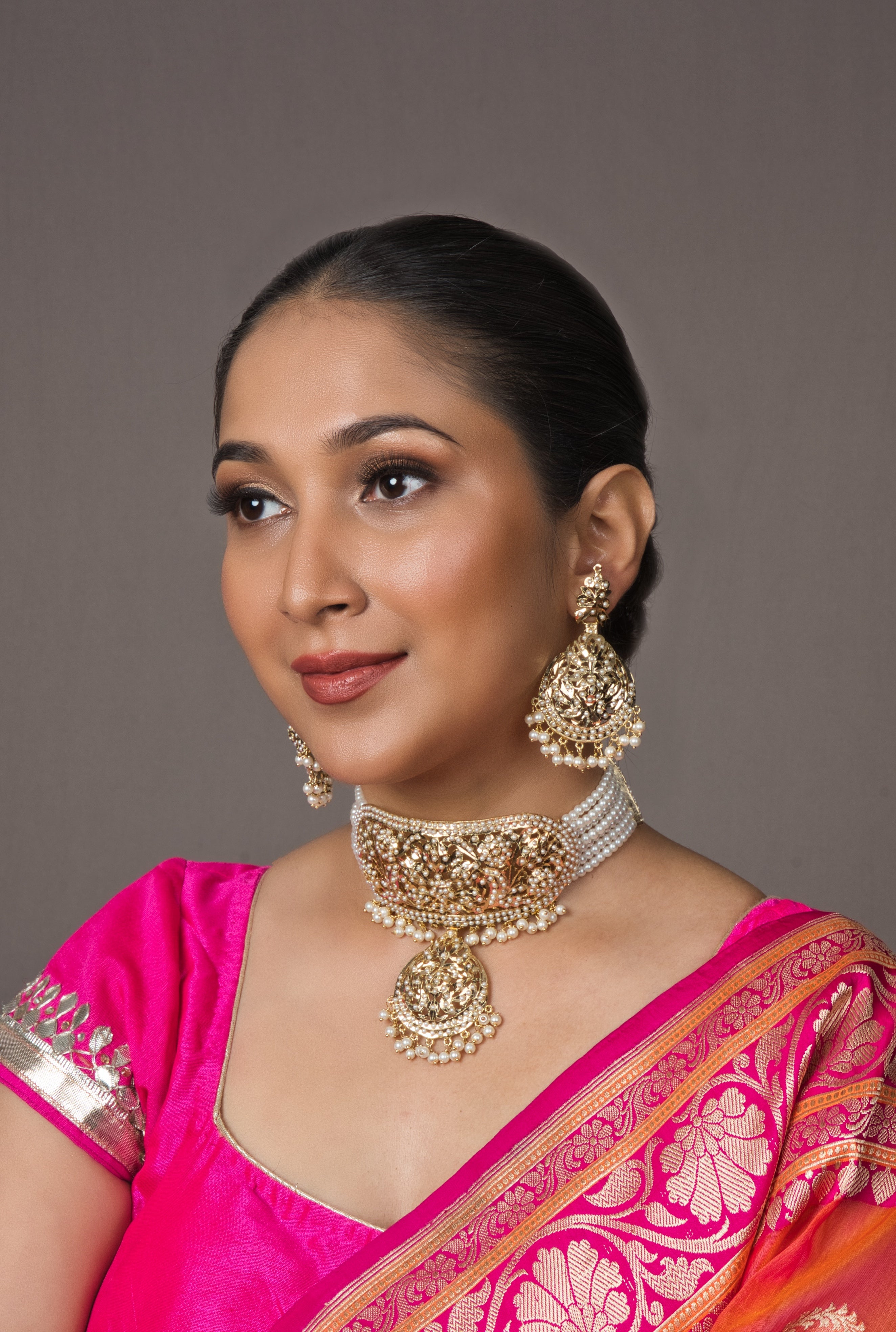 Bridal White Jadau Neckhugging Choker Set With Earrings