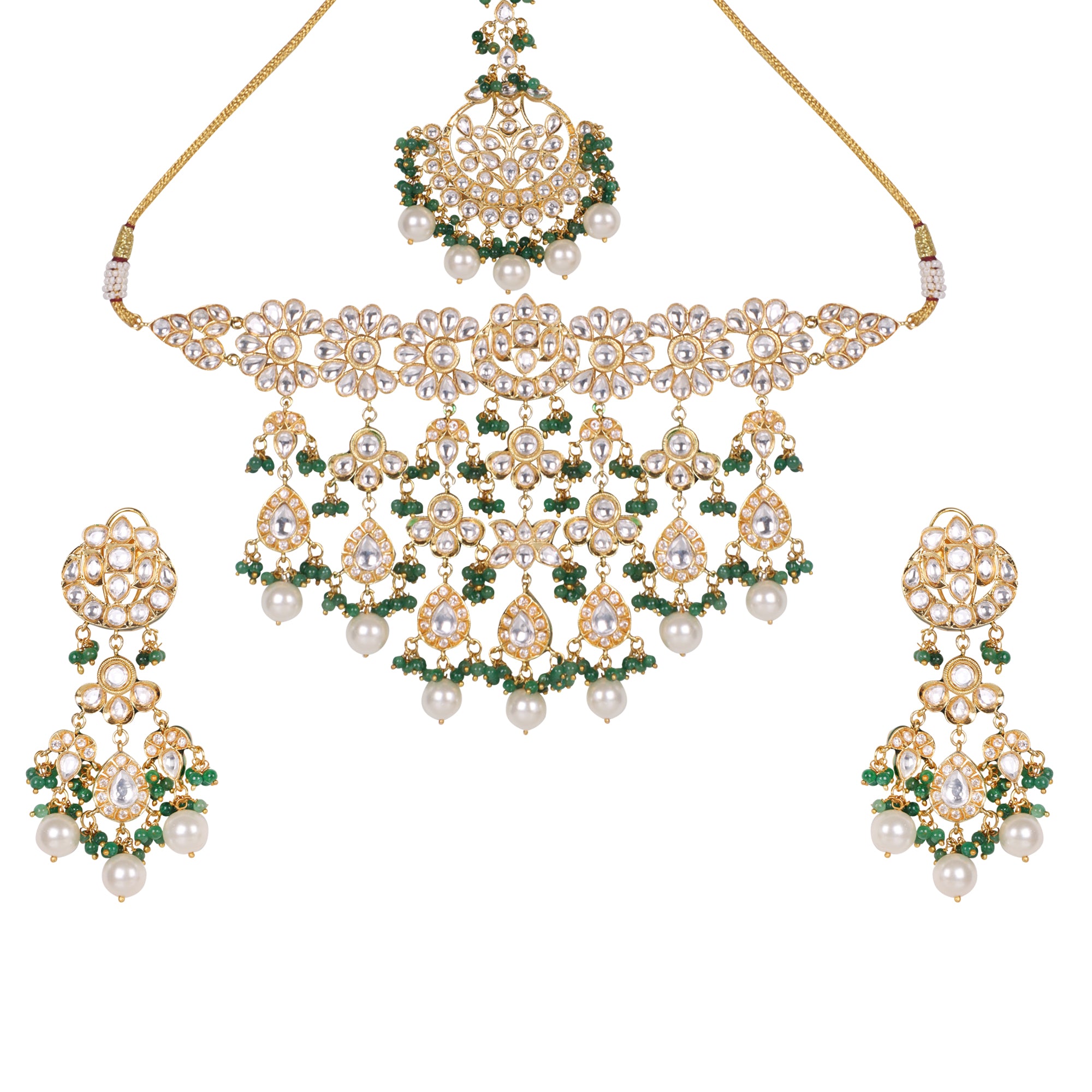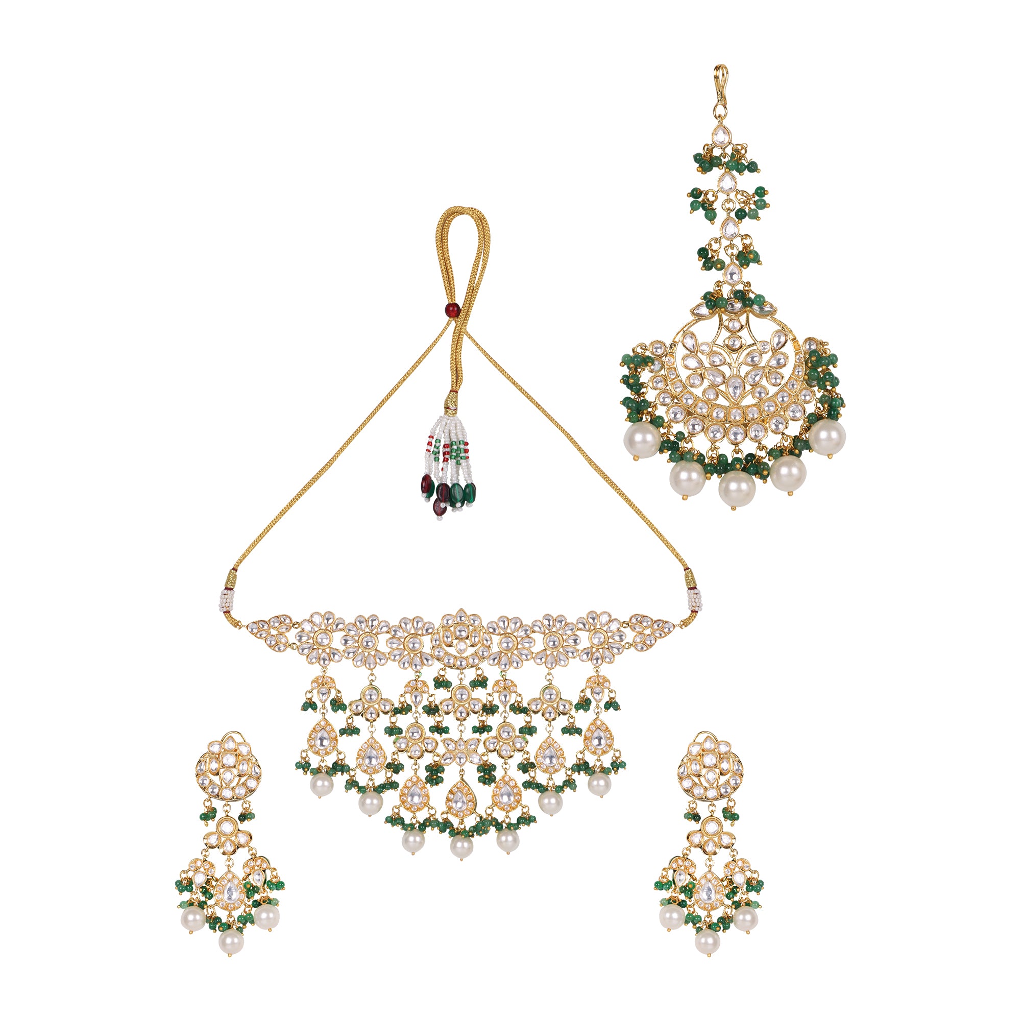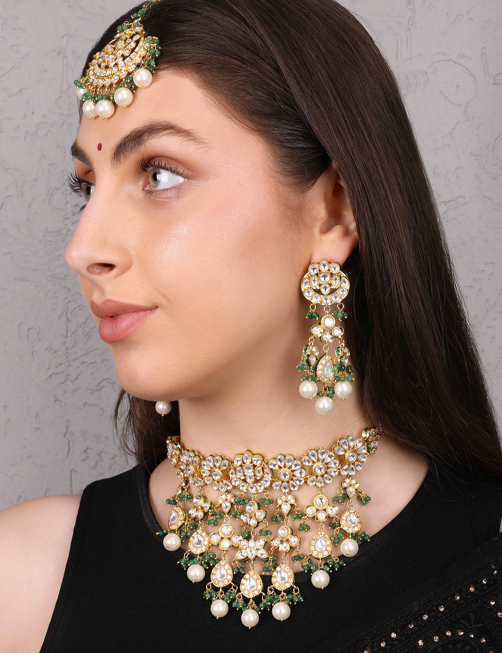 Royal Green Layered Kundan Choker Set with Maangtikka