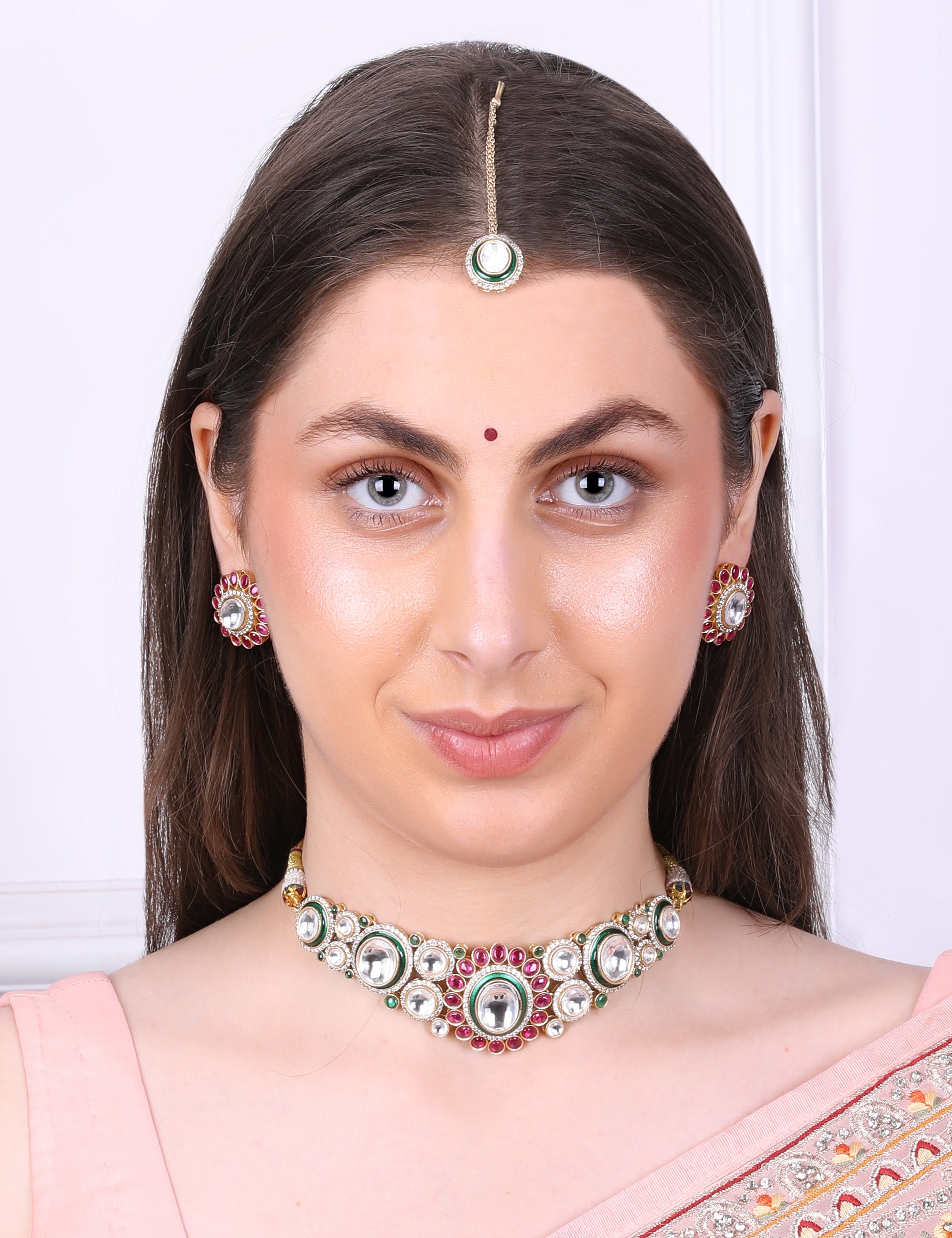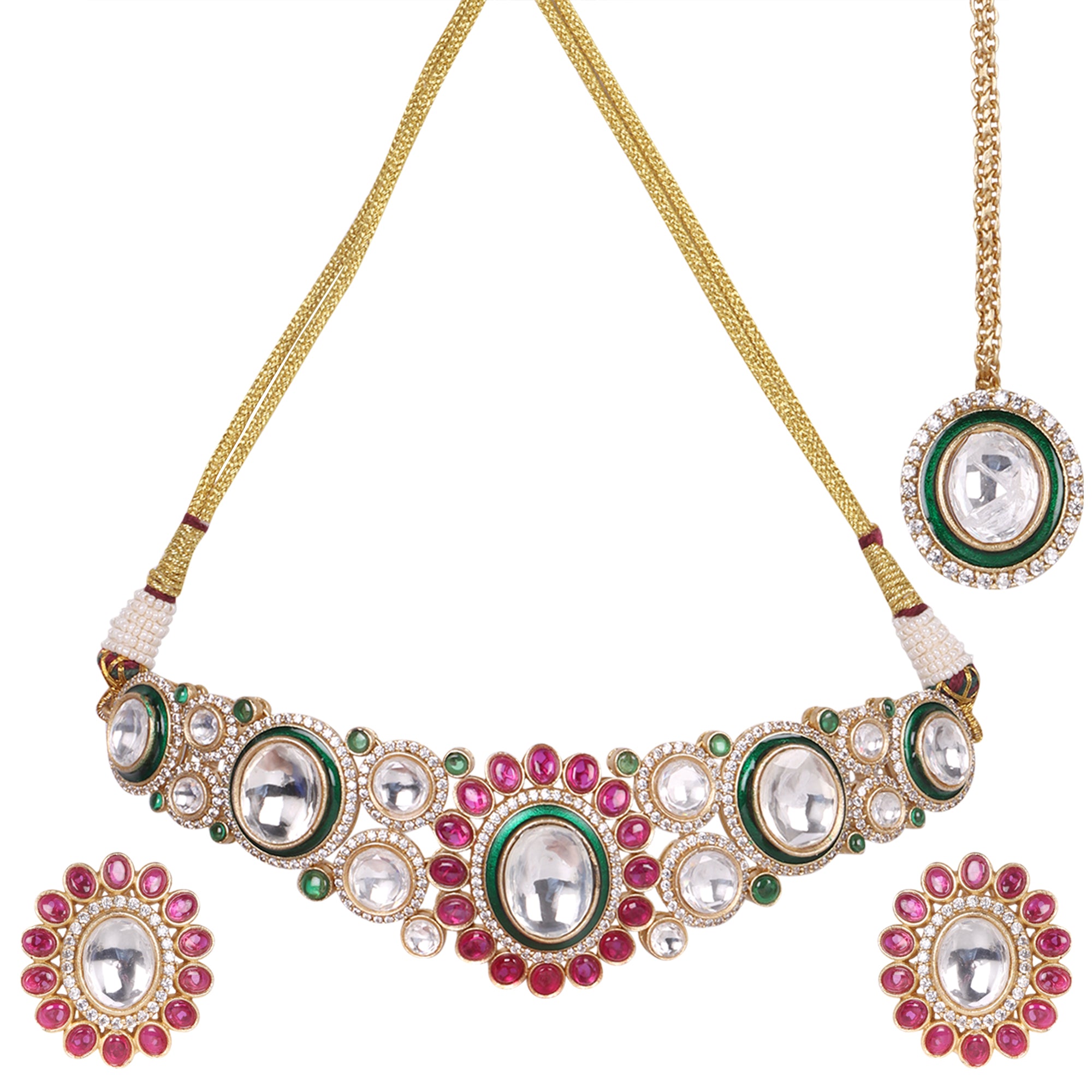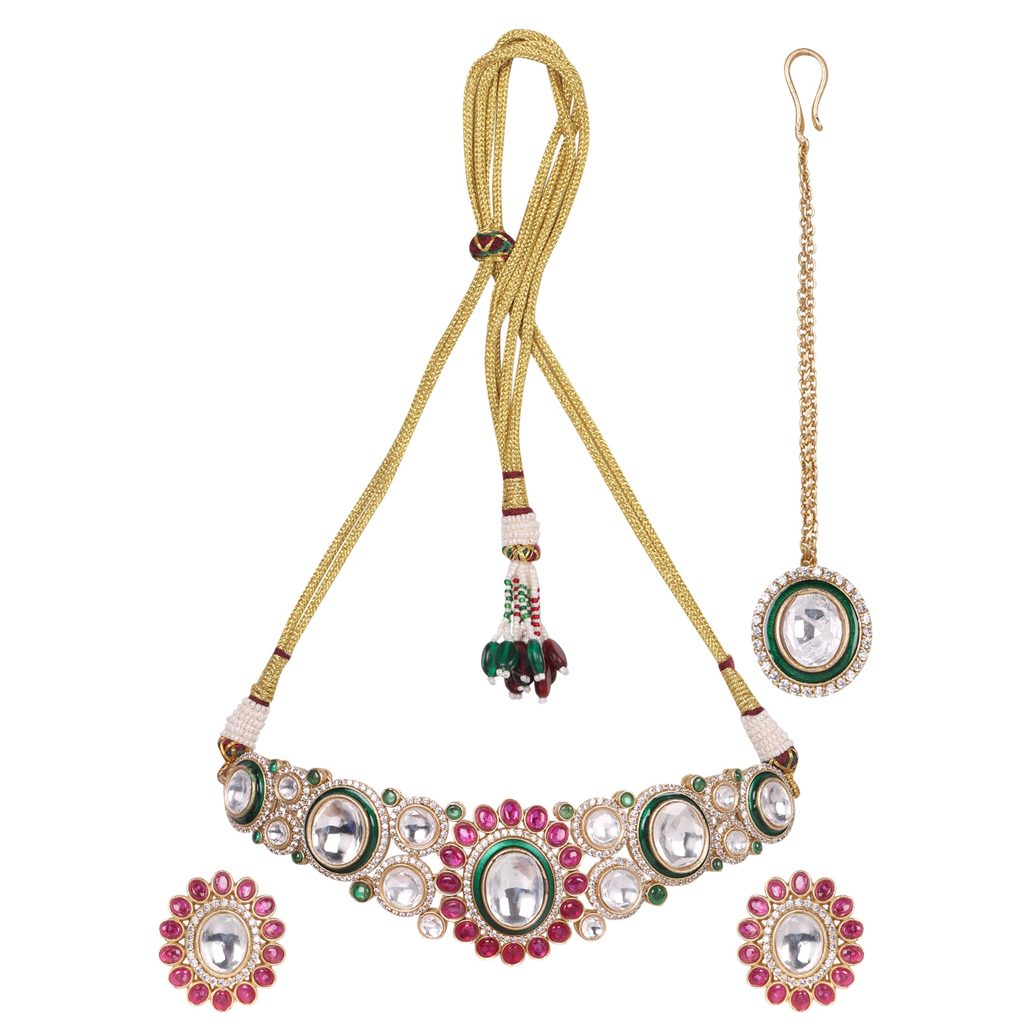Transform into royalty with our Royal Multicolor Polki Kundan Set with Maangtika. Made with exquisite polki kundan stones, this set exudes elegance and luxury. Perfect for special occasions, this set will make you stand out in the crowd. Feel like a queen with this stunning set.